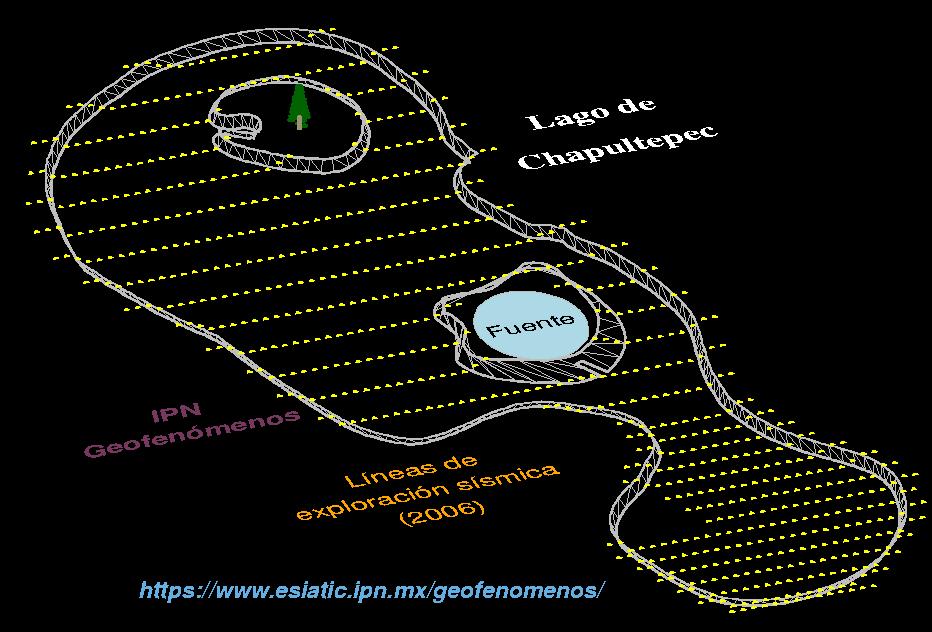 Después del trazo tridimensional del Lago, ahora se incluyen las líneas de exploración sísmica a causa del socavón presentado en el año 2006. El Instituto Politécnico Nacional ejecutó esta exploración.